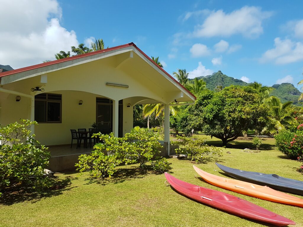 - 3 kayaks sont disponibles : 1 kayak biplace et 2 kayaks monoplaces, que vous pourrez partager entre les deux Fare. Pour les transporter jusqu'au ponton situé au bord de l'eau, devant l'entrée de Villas Teakavehere, une charrette est disponible. Vous pouvez ranger les rames à l'arrière du Fare Hibiscus.